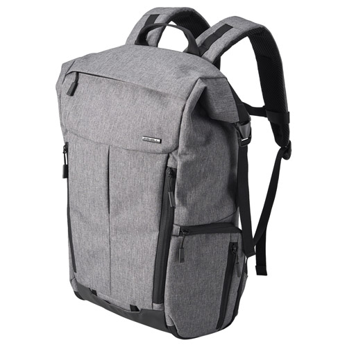 バックパックは「ロールトップバックパック」と「フラップバックパック」の2製品で、ロールトップバックパックはバッグを下ろさずにカメラを出し入れできるサイドアクセス構造のカメラ収納部と、ロールトップの上部収納部からなる2気室を装備し、15インチ相当のノートPCを収納できる。