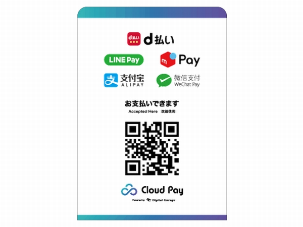 株式会社デジタルガレージを中心とするDGグループは、店頭に設置したQRコードをユーザーのスマホで読み取って支払う、読み取り支払い型のマルチQRコード決済ソリューション「クラウドペイ」の提供を開始している。