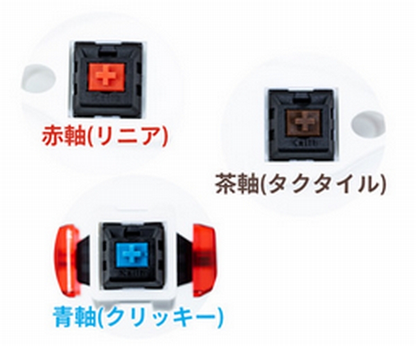 また、逆端にはKailhのトラディショナルメカニカルスイッチの赤軸(リニア)、茶軸(タクタイル)、青軸(クリッキー)が付属し、テスターとして使うこともできる。