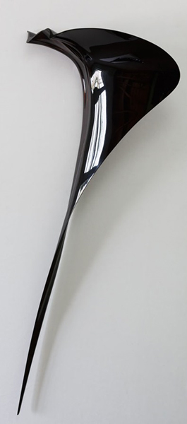 漆の造形表現を追求する中で、井川氏は近年ではヤシの葉を造形材とし、自然の形を積み上げたり貼り合わせたりしながらの制作を展開。自然の形を生かして成形しながら、その過程で生まれる偶然性をも捉えたシャープで独特なフォルムを見出している。風、光、水といった自然を彷彿とさせる形や、幾重もの闇が堆積したような漆黒は、同氏の作品の大きな特徴。漆という素材が秘めた原初のエネルギーと太古の記憶を現代に呼び起こすかのような壮大なスケール感で、鑑賞者を魅了する。