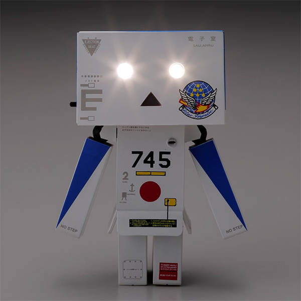 目が光るギミックが搭載されており、関節もリボルバージョイントによって動く。ブルーインパルスの象徴である白とブルーの配色で、細かい表記のコーションマークまで丁寧に再現された。可動部分は5カ所で、ジョイント使用数は5個。1番機〜6番機までの全6種のラインナップが用意されている。なお、頭部側面、ボディ前面と背面にプリントされているシリアルナンバー(機体番号)は、2018年12月に開催された「美ら海エアーフェスタ2018」のデータに基づいて正確に再現されたもの。