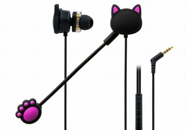 本製品は、猫をモチーフにしたゲーミングイヤホン。イヤホンヘッドには猫耳をあしらい、ボイスチャット用のアームマイクの先端にはぷにぷに肉球の猫足がデザインされている。