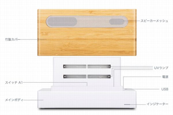 また、紫外線カバーの竹製BOXはサウンドBOXとしても機能。充電中のスマホから音楽を流せば、まろやかで、アコースティックな深みのある音色で音楽が楽しめる。