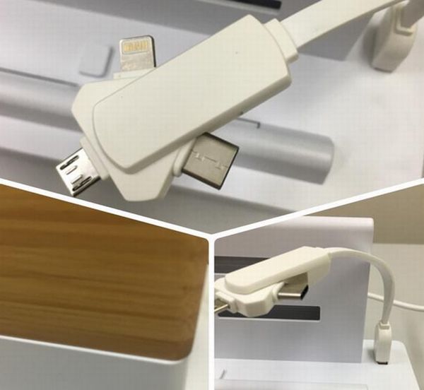 充電コネクタはLightning、USB-C、microUSBの3つに対応し、多くのスマホに対応する。