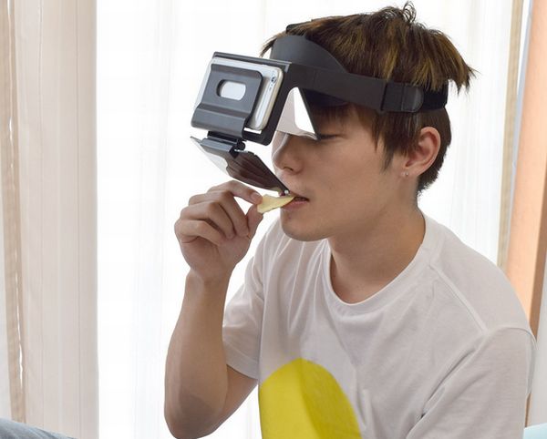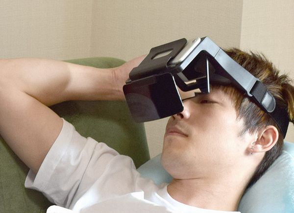 ヘッドマウントとして頭に装着するので、動画視聴時に手で支える必要がない。そのため、ベッドやソファーで寝転びながら見たり、椅子に座ってみたり、食べ物を食べながら見たり、スマホ接続のコントローラーでゲームをしたりと、視聴方法が自由なのも魅力。
