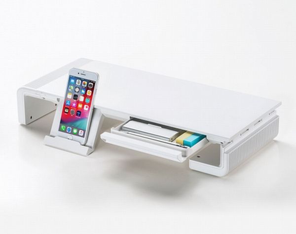 また、ラックにはスマートフォンスタンドやメモ用紙やペンが収納できる引き出しも付くので、利便性が高くなっている。