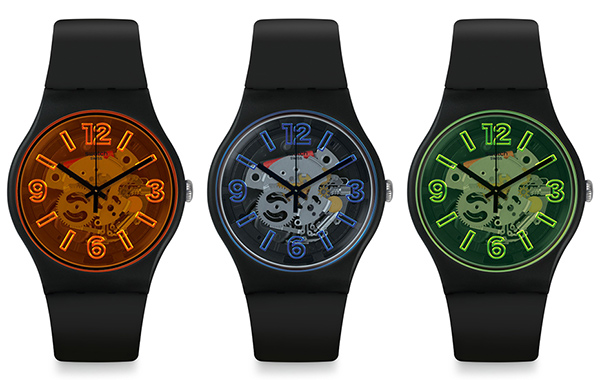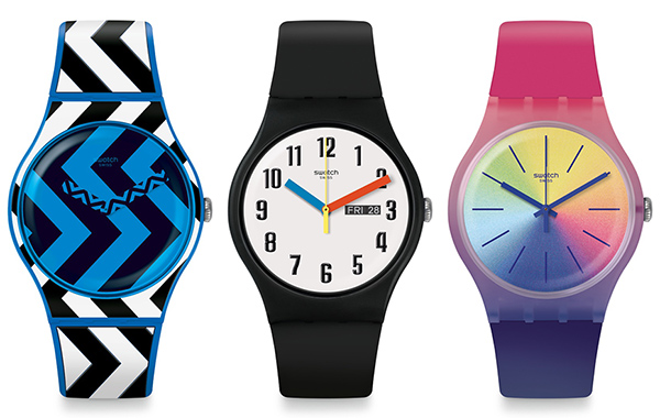 製品ラインナップには、黄色が印象的な「D-FORM(GJ139)」や青色が印象的な「BLUZAG(SUOS111)」といった鮮やかな配色のモデルから、長針・短針・秒針にそれぞれ赤・青・黄のカラーリングを用いたモデル、曲線を巧みに取り入れたモデルなどまで、さまざまなバリエーションを用意。全国のスウォッチ取扱い店舗およびオンラインストアにて購入できる。