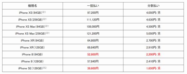 価格は、iPhone XSが97,200円~、iPhone XS Maxが108,000円~、iPhone XRが64,800円~。