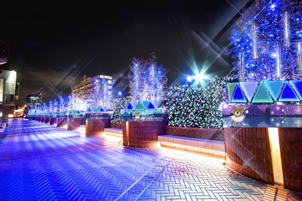運河の中を歩いているかのような体験ができる青いイルミネーション「コロプラキャナルウォーク」
