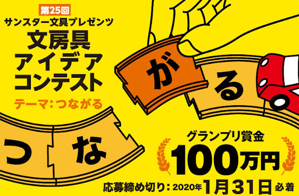 サンスター文具株式会社は、2019年11月1日(金)から「第25回 文房具アイデアコンテスト」を開催中。2020年1月31日(金)まで、プロ/アマ不問で応募を受け付けている。1995年からの四半世紀にわたる歴史を持つコンテストで、これまでに受賞作品からの商品化も多数。今年は“つながる”を一般部門のテーマとして開催されている。