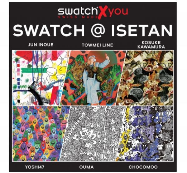 本イベントには、Chocomoo, Jun Inoue, Kosuke Kawamura, Ouma, yoshi47, 透明回線という新進気鋭の6人のアーティストが、スウォッチのために描いたエクスクルーシブアートが登場。