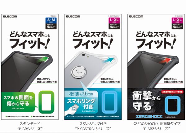 幅広いサイズのスマホに共通で使える「汎用シリコンバンパー」発売、エレコムから