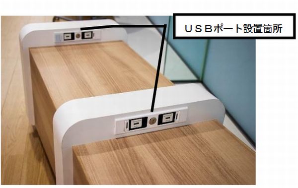 同社では特急ロマンスカーの待ち時間にスマホなどを充電できるよう、1台のベンチに4つのUSBポートを有するベンチを開発し、既存の10台のベンチと置き換える。