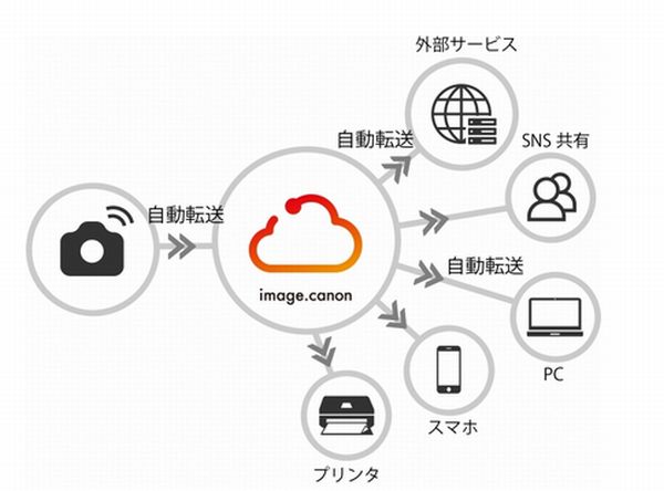 カメラとクラウドが直接つながることで、自動転送機能搭載カメラから「image.canon」に対してWi-Fi経由で静止画・動画をオリジナル画質のまま、自動転送できるようになる。