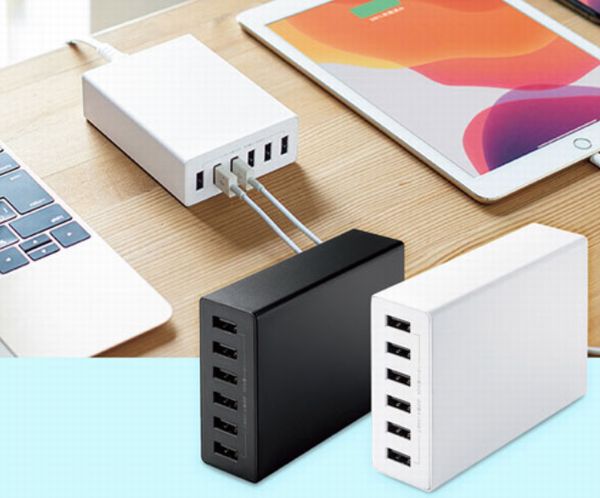タブレットやスマホを最大6台同時充電可能な「6ポートUSB充電器」、サンワサプライ