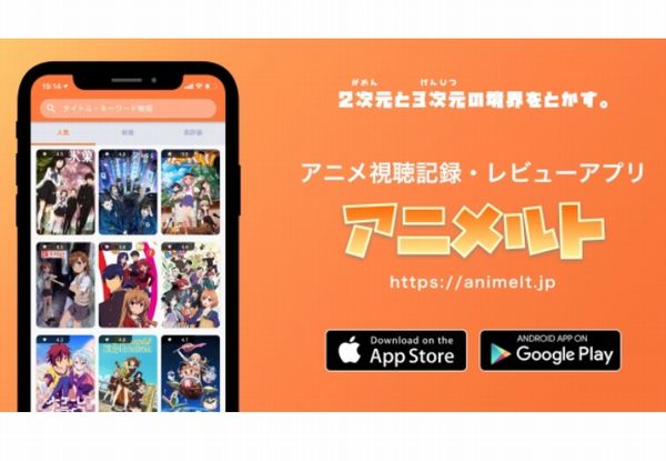 株式会社MOSHPITは、アニメファンに向けた、アニメ作品のレビューや記録管理ができるアプリ「アニメルト」を配信開始している。アプリはApp StoreやGoogle PlayでiOS/Android版がダウンロードできる。