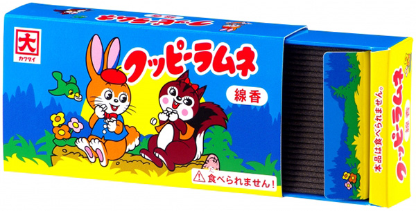 ローソクや線香の製造販売を手掛けるカメヤマ株式会社は、カクダイ製菓株式会社とコラボレーションし、「クッピーラムネ ミニ寸線香」を発売した。1963年に発売されて幅広い世代に愛され続けているロングセラー駄菓子「クッピーラムネ」をモチーフとした線香。ウサギとリスのキャラクターが象徴的な「クッピーラムネ」そのもののレトロなパッケージが採用されている。