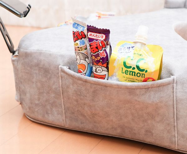 サイドには収納ポケットも搭載。ゲーム中や動画視聴中にちょっと小腹が空いたときなどはすぐにお菓子を取り出して補給、といった使い方もできる。