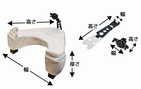 クッションサイズは高さ510×幅550×厚さ210mm、アームは高さ290×幅80mm、ホルダーは高さ100×幅110mm。対応スマホサイズは横5.8~横8.2cm。重量は1153g(ホルダーを含む)。