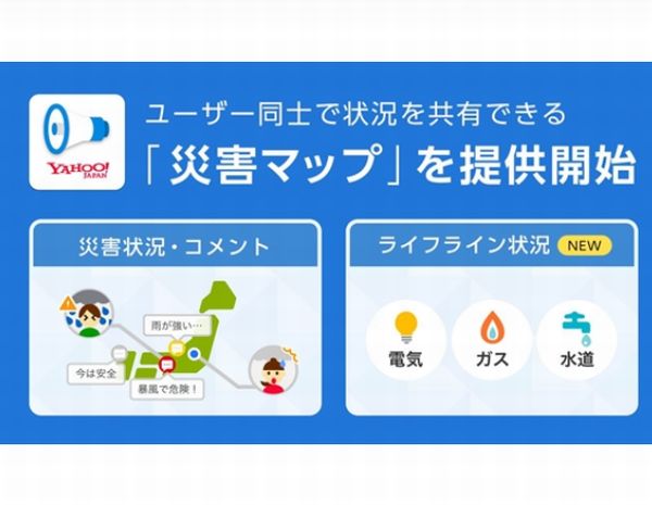 Yahoo!防災速報アプリ、ユーザー同士で災害状況を共有できる「災害マップ」開始