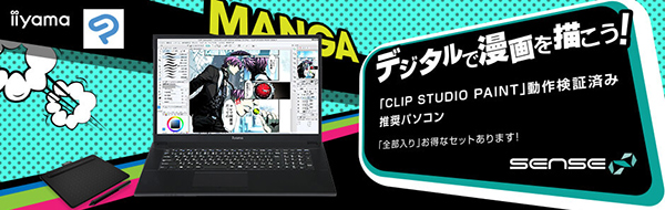 株式会社ユニットコムは、iiyama PCブランドの「SENSE∞」の新製品として、「CLIP STUDIO PAINT 推奨 イラスト・マンガ制作向け フルHDノートパソコン」を順次発売する。17型モデルの販売が既に開始されており、2020年4月から14型モデルも順次販売予定。株式会社セルシスの「CLIP STUDIO PAINT」での動作検証が行われ、推奨認定を取得した製品となっている。