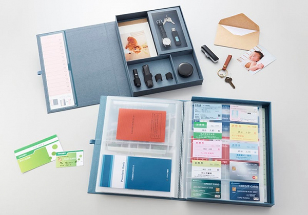 「自分まとめファイル」は、“自分も家族も安心できるもしものための”アイテムとして設計された。本体色はアオで、価格は4800円(税抜)。ポケットファイルとフリーボックスの2冊1組のセットで、診察券、通帳、契約書、印鑑、カギ、思い出の品などを効率的に収納でき、デジタル資産の管理に適した2枚のパスワードシートや簡易的なエンディングシートも同梱されている。