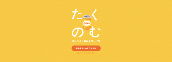 「たくのむ」は、制約に左右されずに“会いたい人に会う”ために、オンラインで気軽に“飲み会”を開催できる環境を作ることを目指したツールだ。新型コロナウイルスの影響で、外出したり人に会ったりしづらくなった現状を踏まえ、このタイミングでのリリースが決まった。