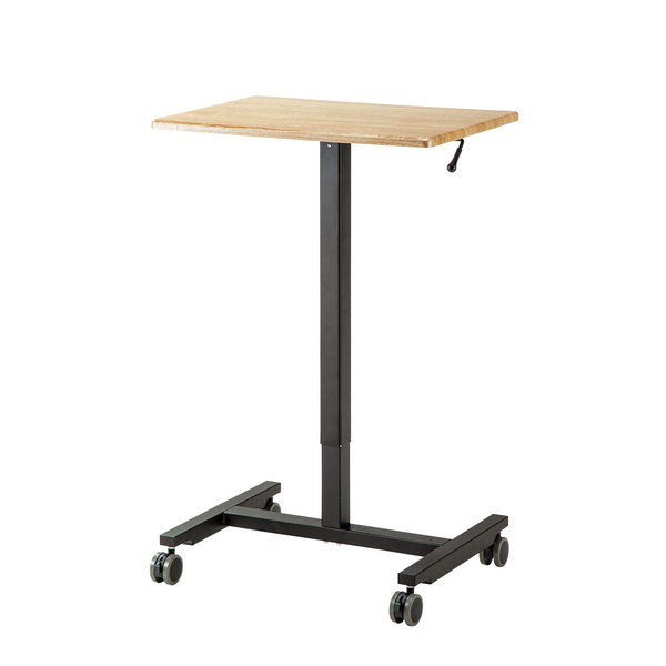 本製品の天板は、620(幅)×18(高さ)×430(奥行)mmのサイズ。コンパクトながら、ノートパソコンや書類、タブレットを同時に設置することもできる。昇降時の総耐荷重は10kgで、静止時の総耐荷重は20kg。ガス圧式であるため、電源が限られていたり近くになかったりする場所でも使用でき、場所を問わずに使いやすい。