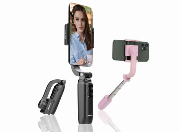 ユーチューバーなどが使っていることでもお馴染みの、動画のブレを防ぐジンバルに18cmまで伸縮するロッドを備え、自撮り棒として使うこともできる。