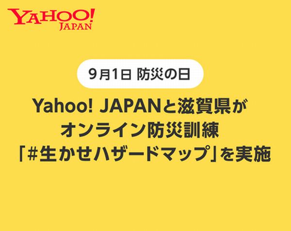 ヤフー株式会社と滋賀県は、9月1日の「防災の日」に、オンラインでの大規模な防災訓練「#生かせハザードマップ」キャンペーンを実施すると発表した。