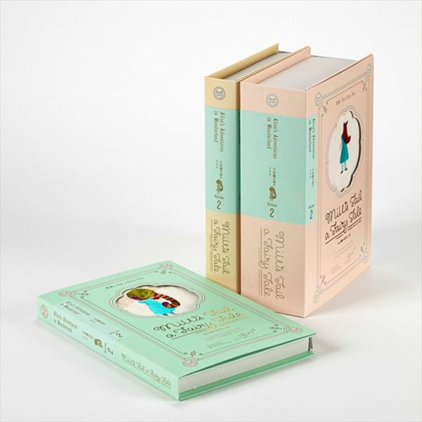 不思議の国のアリスをモチーフにしたシリーズと、赤ずきんちゃんをモチーフにしたシリーズがあり、それぞれバスタオル、フェイスタオル、ウォッシュタオルに加えて3種タオルのセットをラインナップ。1番目がバスタオル、2番目がフェイスタオル、3番目がウォッシュタオルといった順番で、タオルの柄によって物語が進んでいくデザインだ。3種のセットにはスリーブが付いている。