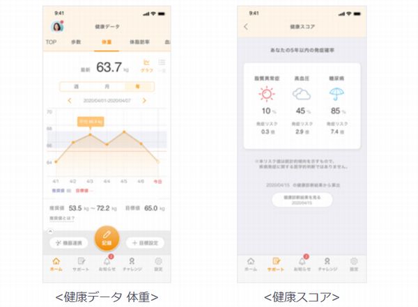 本アプリは、スマートフォンを使って歩数・体重・脈拍などの「健康データ」の管理機能や、健康データと健康診断・採血検査の結果データをもとに生活習慣病の発症リスク度を提示する「健康スコア」、利用者が自覚症状を複数の質問に回答することで適切な受診先を提示する「AI受診相談」、近隣の医療機関情報を提示する「医療機関検索」といった機能を有する健康管理アプリ。