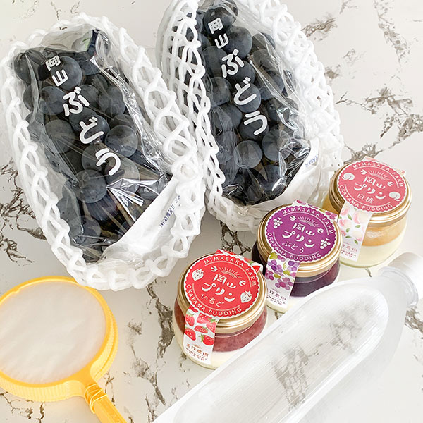 岡山県美作市で観光農園を運営している有限会社美作農園は、直売所やオンラインショップで「ぶどうすくいセット」の販売を開始した(https://mimaenshop.com/products/detail/53)。直売所では2,160円、オンラインショップでは送料込みで3,000円での購入が可能(いずれも2020年9月9日時点での税込価格)。ぶどう2房とポイ10個、岡山プリン3個、炭酸水1本がセットになっており、まるで縁日の金魚すくいやスーパーボールすくいのような“ぶどうすくい”を自宅で楽しめる。
