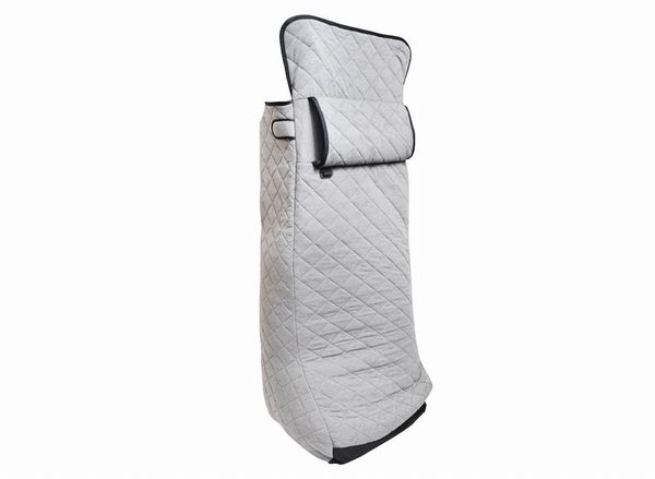 着るように利用できるひとり用こたつで、足元から胸元まで、Wヒーター(足元とお腹部分に搭載)で35~55度の幅で温まることができる。