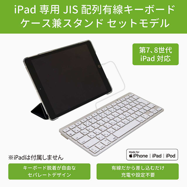 リンクス、iPad用のキーボード「Lightning KANA-JIS」とケース兼スタンドのセットを発売