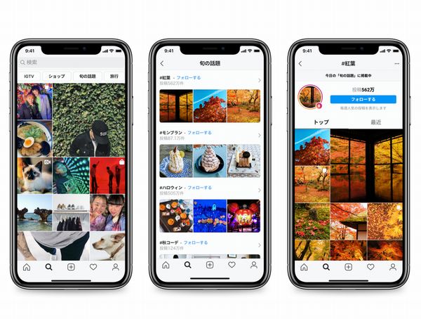 Instagramは19日、Instagram上で話題になっているトピックを簡単に発見できる新機能「旬の話題」を導入したと発表した。