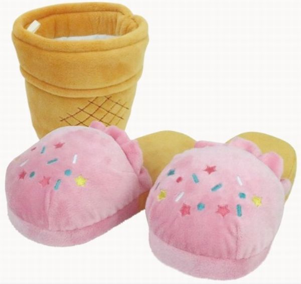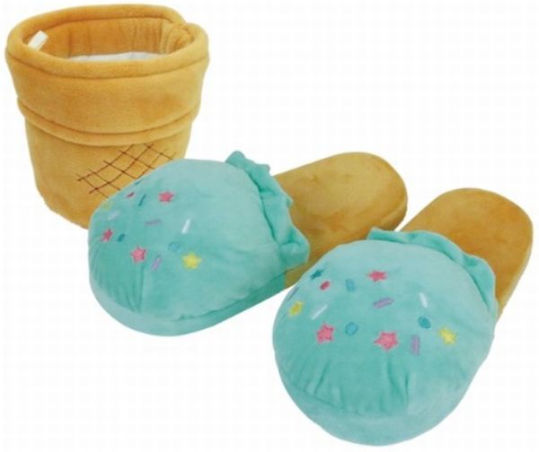 本製品は、コーンに入ったアイスクリームを模したルームシューズ。