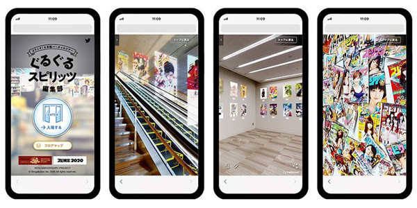 株式会社小学館が発行する漫画雑誌「週刊ビッグコミックスピリッツ」の創刊40周年プロジェクトの一環で、「ぐるぐるスピリッツ編集部」Webサイトが公開された。編集部内が3Dスキャンによって丸ごとバーチャル化されており、株式会社小学館の入り口から編集部の内部までWeb上で探索することが可能。バーチャルツアーのほかに、デジタル作品展やグラビア部屋などの特別展示も公開されている。