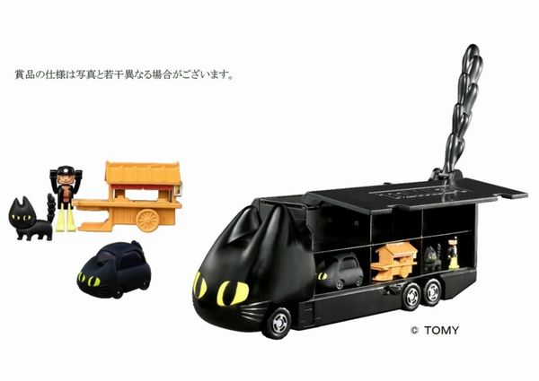 セット内容は、くろネコを模したドリームトミカ「チャルメラ くろネコ」と、プラキッズ「チャルメラおじさん」、それらを収納する大型車体の「大きなくろネコ」。