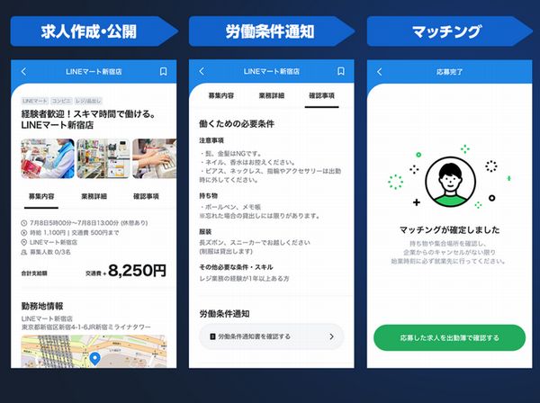そのような人手不足の企業と、単発で働きたい人をマッチングするのが「LINEスキマニ」となる。