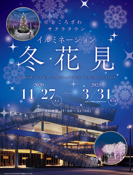 なお、イルミネーション「冬花見」の開催期間は、2021年3月31日(水)までの予定で、一部演出は2020年12月27日(日)に終了。点灯時間は17:00〜22:00となっている。