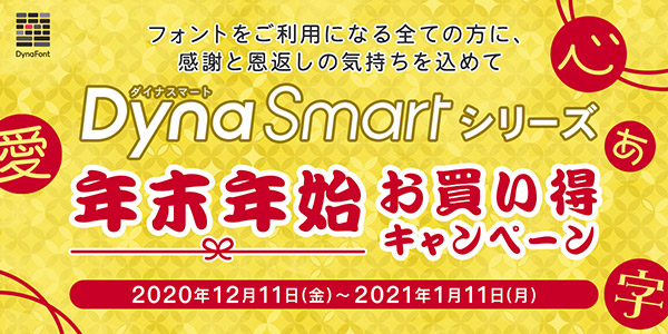 ダイナコムウェア株式会社は、2020年12月11日(金)に「DynaSmartシリーズ年末年始お買い得キャンペーン」を開始した。DynaFontネットショップで、ダイナフォント年間ライセンス「DynaSmartシリーズ」を、通常から最大5,500円OFFの価格で新規契約できるキャンペーン。契約更新や追加契約に関しては対象外で、通常価格のままとなる。キャンペーン実施期間は、2021年1月11日(月・祝)まで。