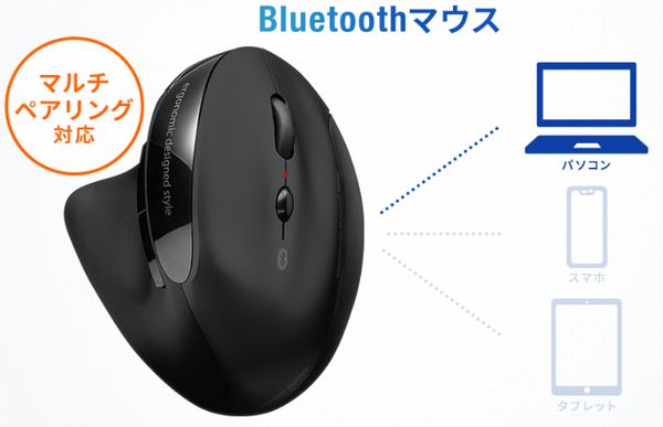 サンワサプライ、充電式ブルートゥースマルチペアリングエルゴノミクス静音マウス発売