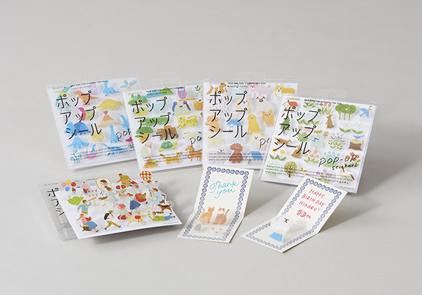 この「ポップアップシール」では、立ち上がった状態で手帳やノートに貼れる構造が採用されている。薄いフィルム素材(PET)であるため、冊子状のものに貼ってもページが浮き上がりにくい仕様だ。マットフィルムが採用されており、“紙馴染み”が良く、マスキングテープやカラーペンなどの手持ちのデコレーションツールとも組み合わせてアレンジしやすい。糊は弱粘着タイプで、いったん貼った後に剥がして貼り直しもできる。