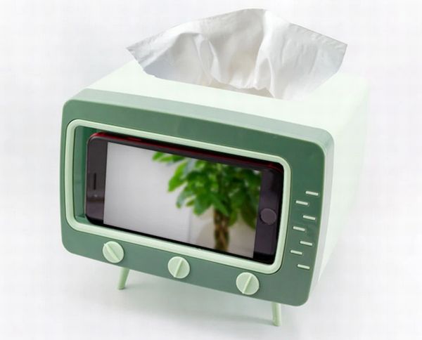 スマホを入れるとブラウン管テレビ風になる「テレビ型ティッシュボックス」発売