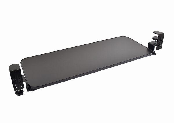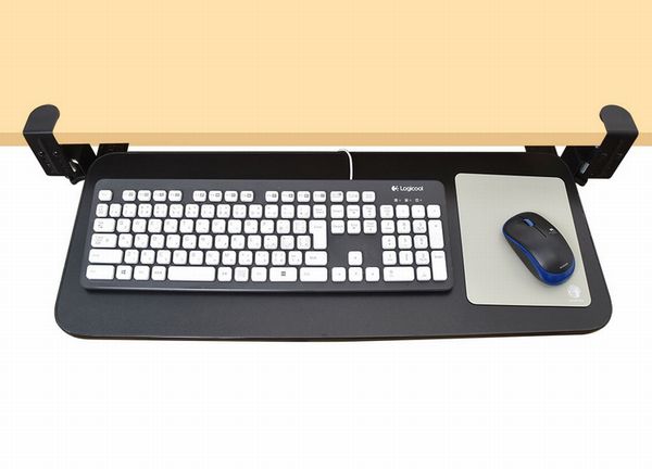 本製品は、クランプで固定してデスクの下に収納できるキーボードトレイ。