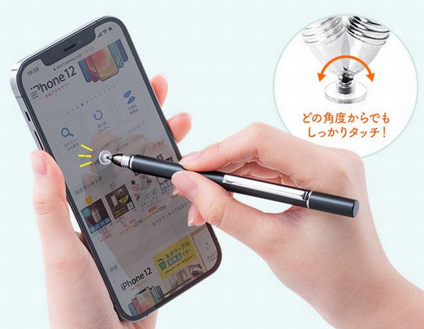 また、「200-PEN036BK」はペン先が見やすい透明ディスク式のタッチペン。