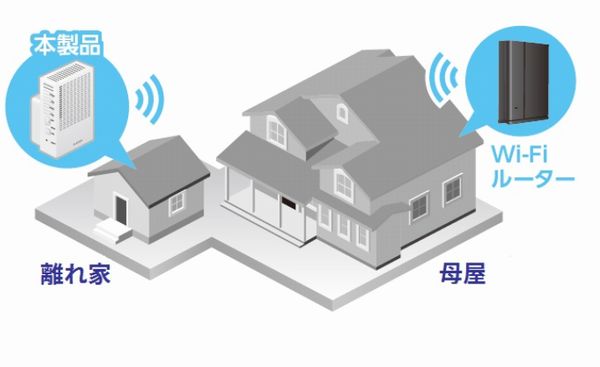 しかし、本製品は5GHzにおいて屋外利用が認められた電波帯域のみで動作する「離れ家モード」の採用により、離れにもWi-Fi環境を構築できる。
