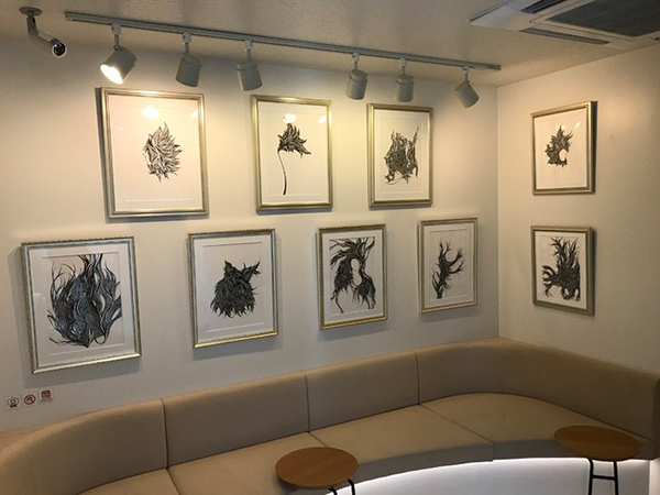 下絵なしにボールペンで作品を仕上げるアーティストのノナカミホ氏による作品展示会が開催