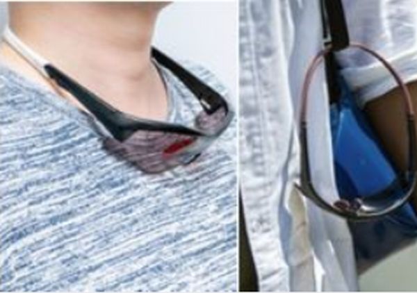 本製品は、マグネットを使って頭の後部でメガネのつるがくっつき、頭にまとう感覚で使用できるサングラス。